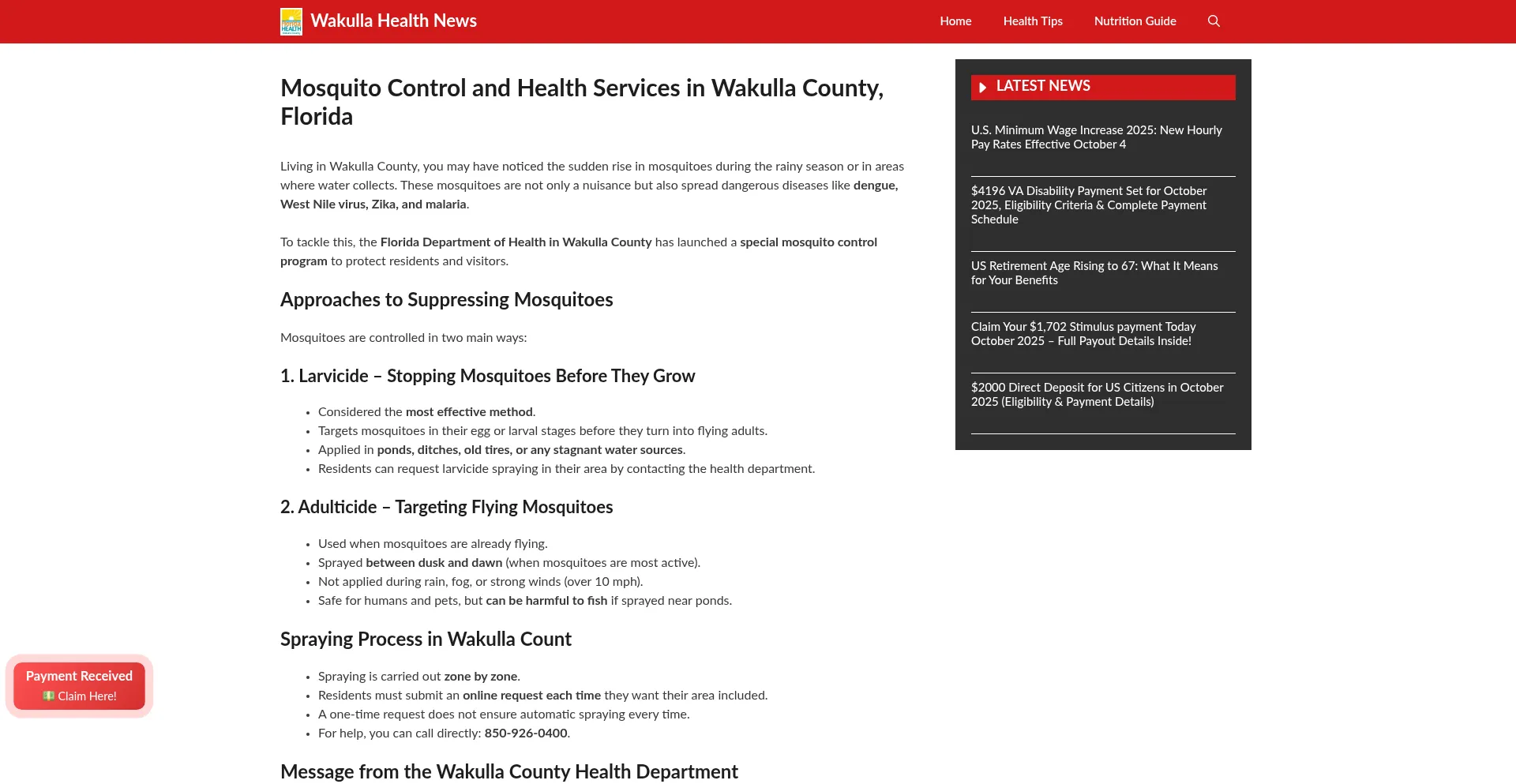 Learn how the Florida Department of Health in Wakulla County controls mosquitoes with larvicide & adulticide, offers health services, and ensures community safety.