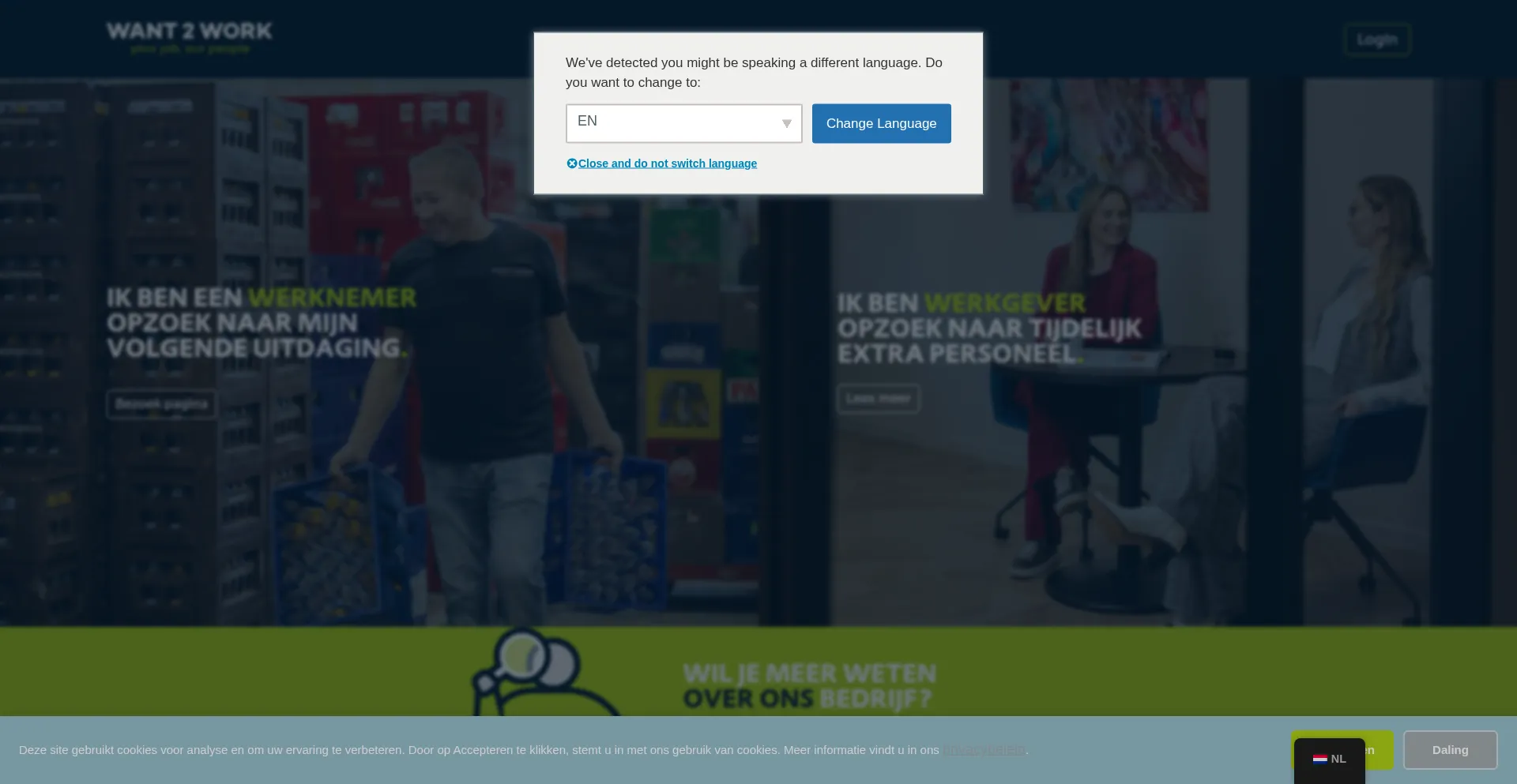 The want2work.nl website uses Google Tag Manager to add and update tracking tags on its website.
