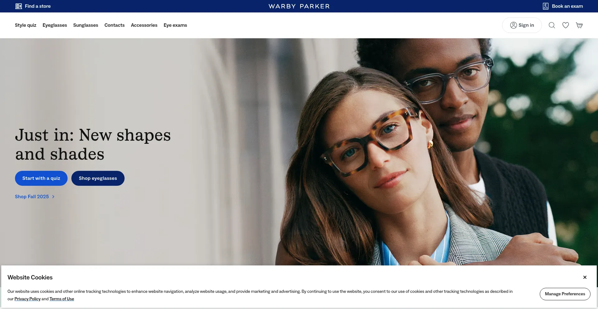 The warbyparker.com website uses Google Tag Manager to add and update tracking tags on its website.