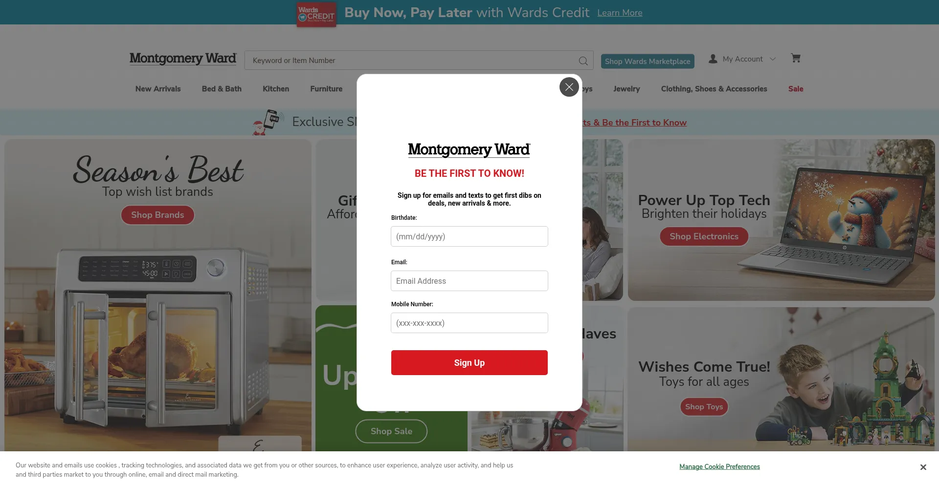 Buy Now, Pay Later with Montgomery Ward® Credit! Discover Stylish Furniture, Home Décor, Electronics, Clothing, Jewelry and More. Improving American Homes Since 1872.