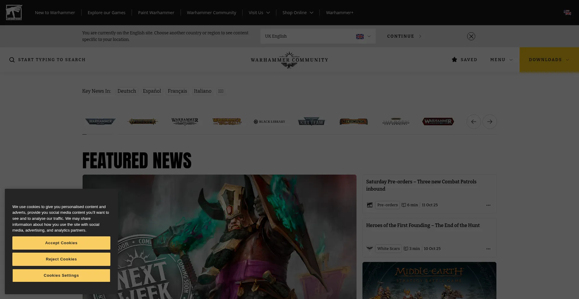 The website implements cookie consent mechanisms in compliance with privacy regulations such as GDPR or CCPA. This demonstrates that warhammer-community.com adheres to data protection standards and provides users with control over personal data collection practices.