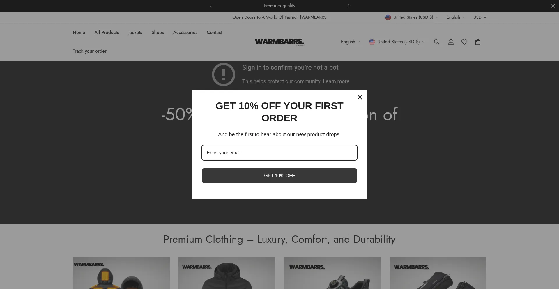 Analysis indicates that warmbarrs.com operates as an e-commerce platform facilitating online transactions for goods or services. The website implements shopping cart functionality, payment processing systems, and product catalog features typical of commercial retail operations.