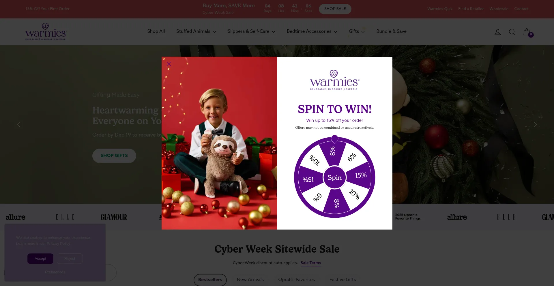 The website implements cookie consent mechanisms in compliance with privacy regulations such as GDPR or CCPA. This demonstrates that warmies.com adheres to data protection standards and provides users with control over personal data collection practices.
