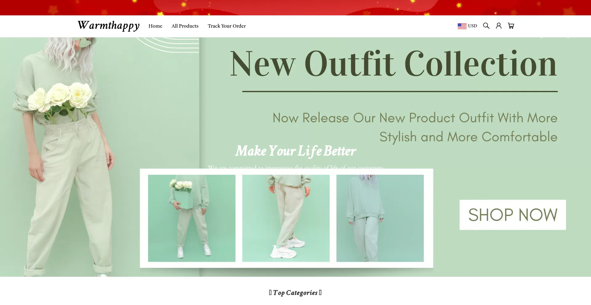 As of November 30, 2025, Warmthappy.com has a very low trust score of 1/100 according to our algorithm. This website shows characteristics commonly associated with fraudulent online shops, including suspicious pricing and payment methods.Through the security analysis, it has been identified as a potential suspicious shop. Our detection system has found multiple risk indicators, and we recommend avoiding this website.