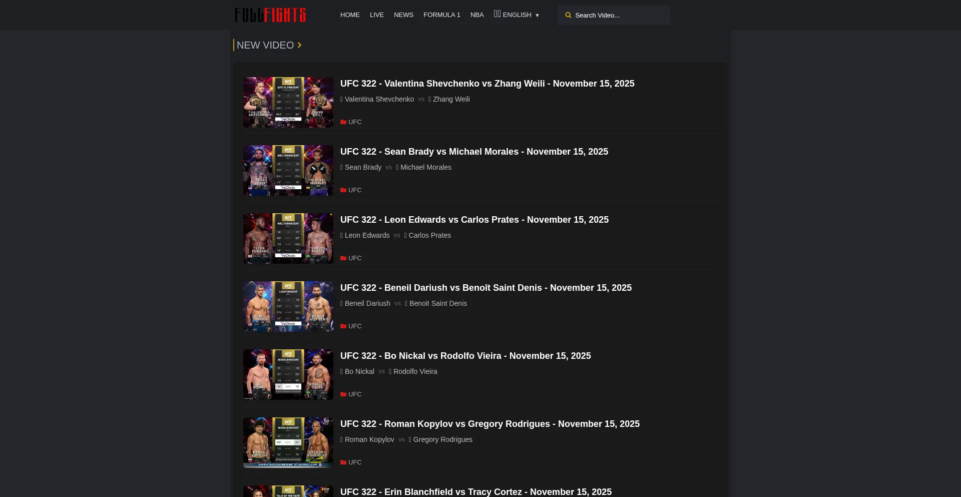 Watch full MMA fights and UFC replays online for free. Latest events, classic bouts, and complete fight cards in HD quality. Stream all major MMA promotions.