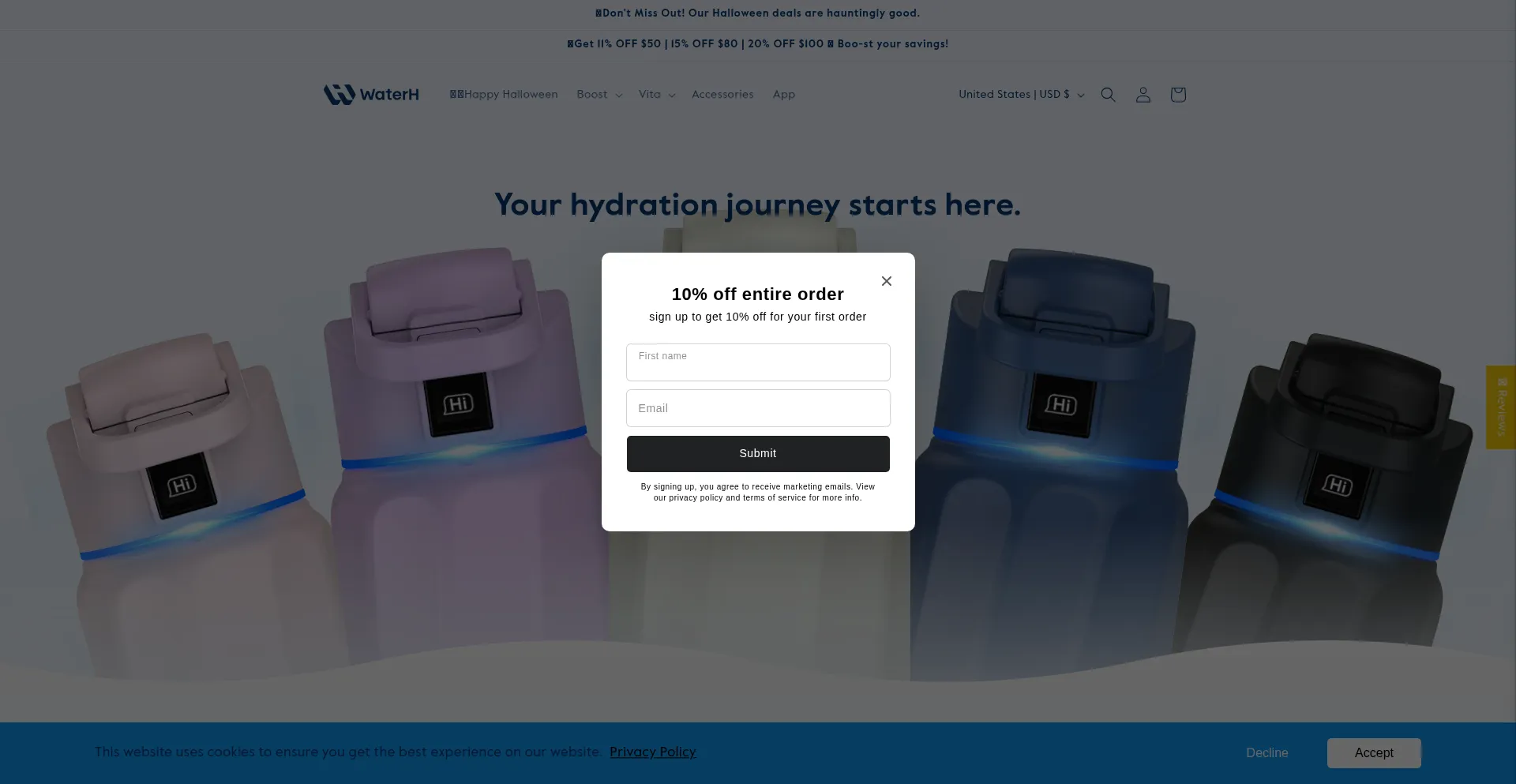 The website implements cookie consent mechanisms in compliance with privacy regulations such as GDPR or CCPA. This demonstrates that waterh.com adheres to data protection standards and provides users with control over personal data collection practices.