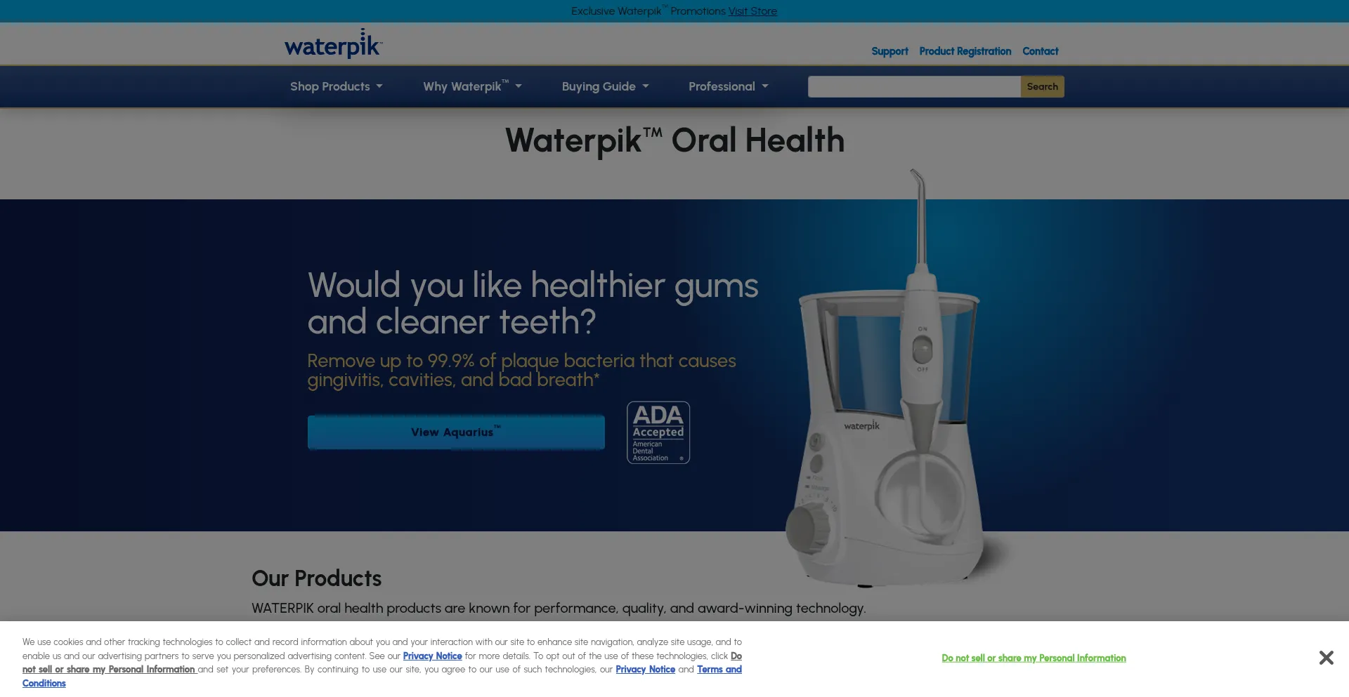 The website implements cookie consent mechanisms in compliance with privacy regulations such as GDPR or CCPA. This demonstrates that waterpik.com adheres to data protection standards and provides users with control over personal data collection practices.