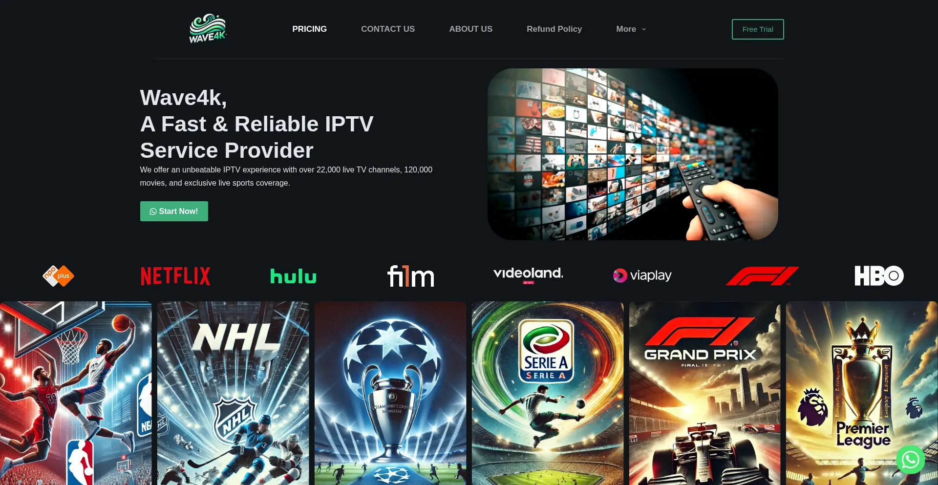 Stream with Wave4k, your Fast & Reliable IPTV Service Provider. Enjoy live TV, movies, and sports anytime.