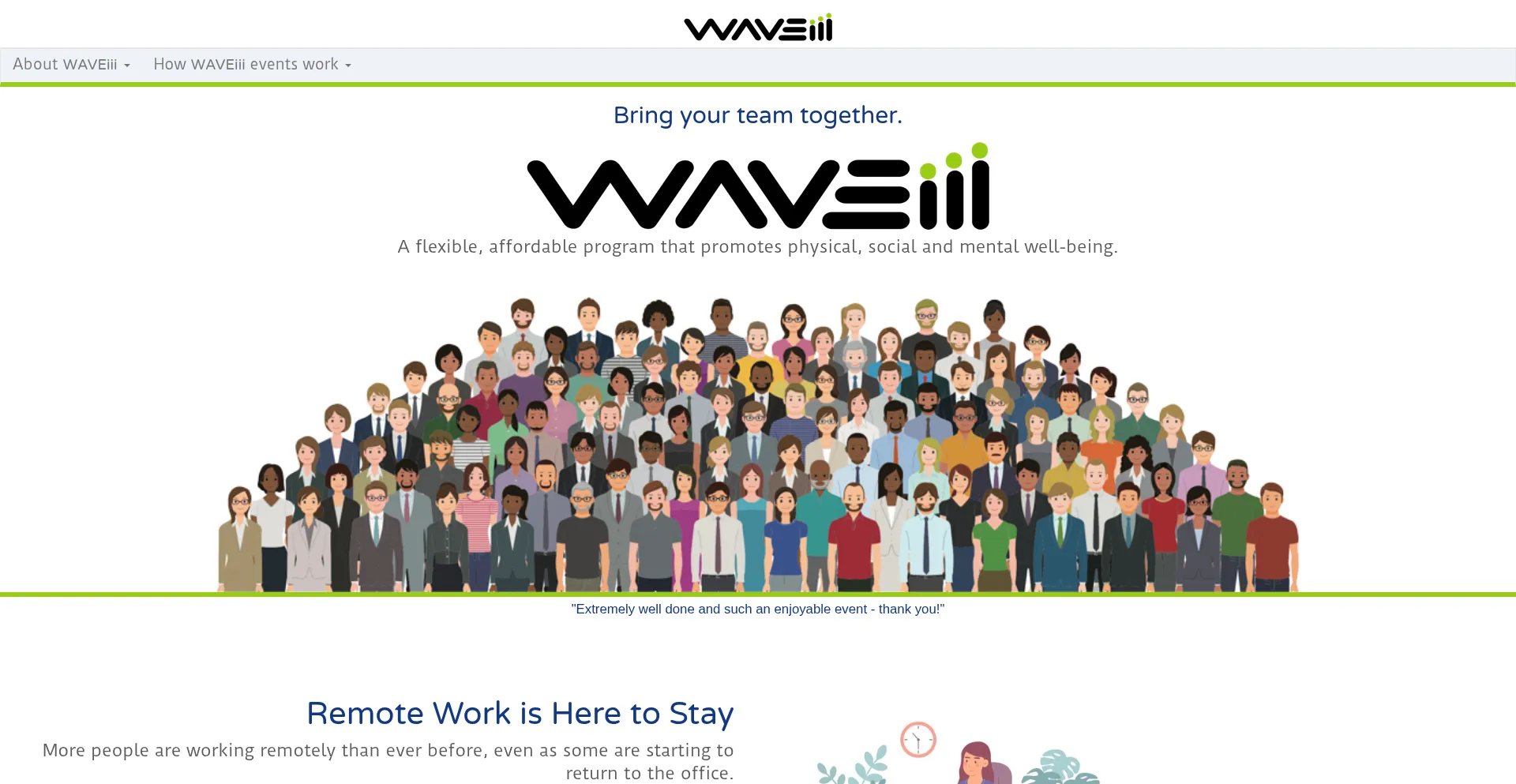 Bring your team together. WAVEiii ('wave three') is a hybrid real-world and online team-building program that can help organizations of any size promote an active, healthy lifes...