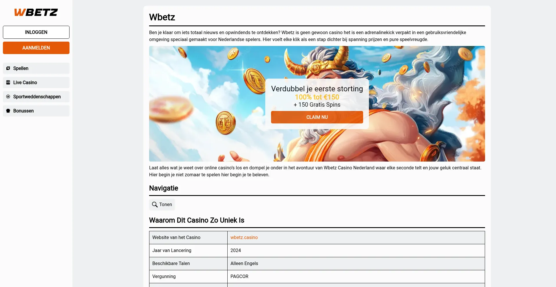 Wbetz is een nieuw online casino sinds zomer 2024. ✨ Profiteer van bonussen, sportweddenschappen, gratis spins en 100+ topgames.