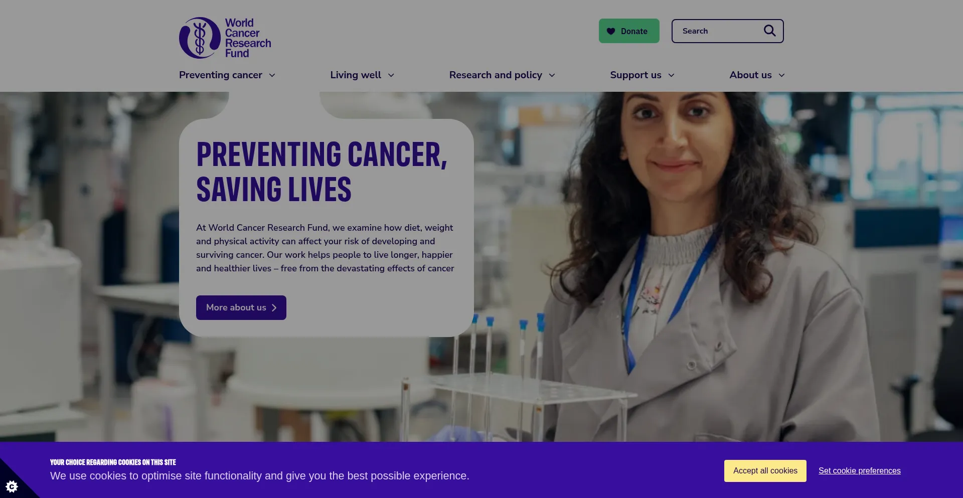 The website implements cookie consent mechanisms in compliance with privacy regulations such as GDPR or CCPA. This demonstrates that wcrf.org adheres to data protection standards and provides users with control over personal data collection practices.
