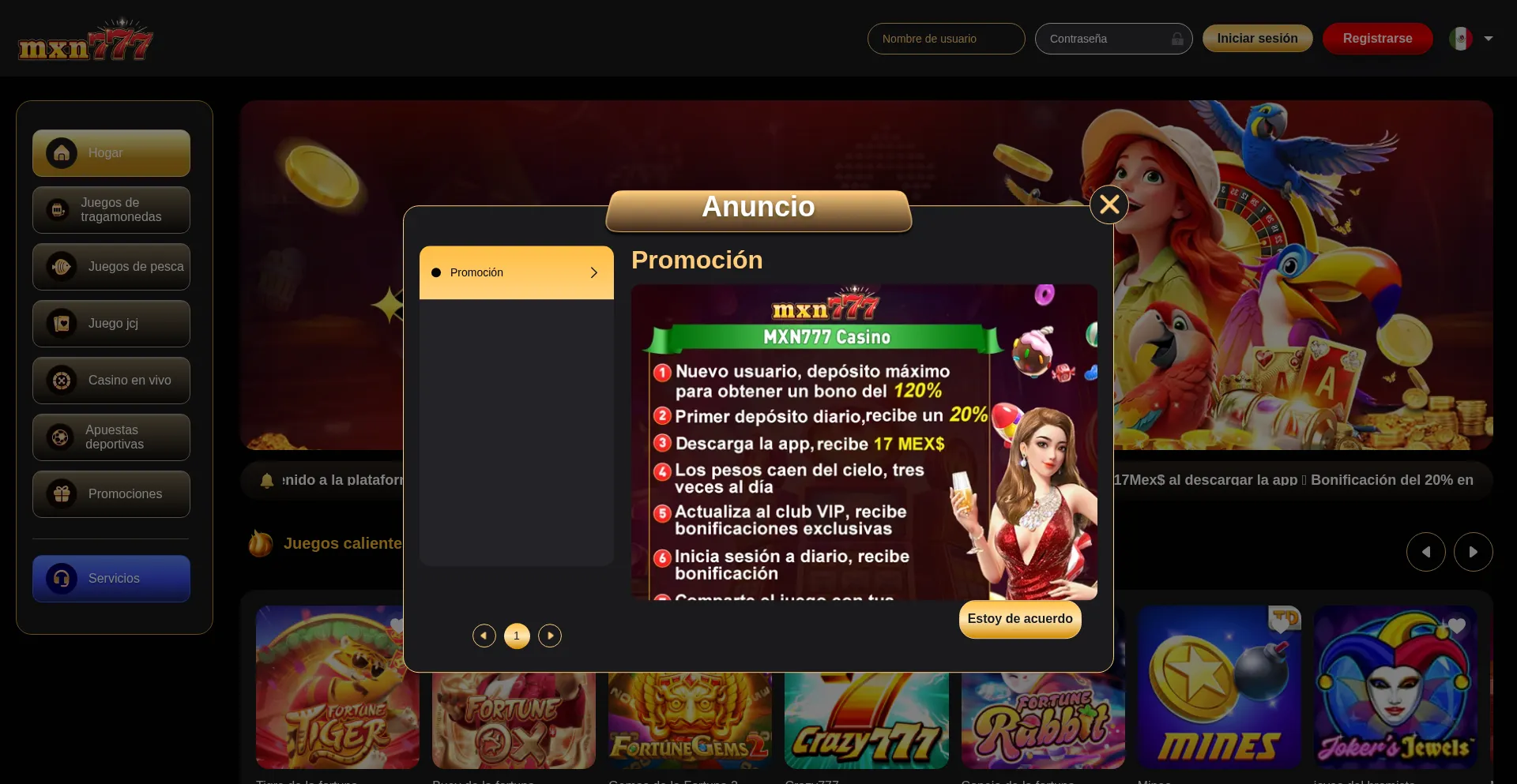 MXN777 es su sitio de confianza para apuestas deportivas y casino en línea en México. Disfrute de tragamonedas, ruleta en vivo, bonos exclusivos y pagos seguros. �...