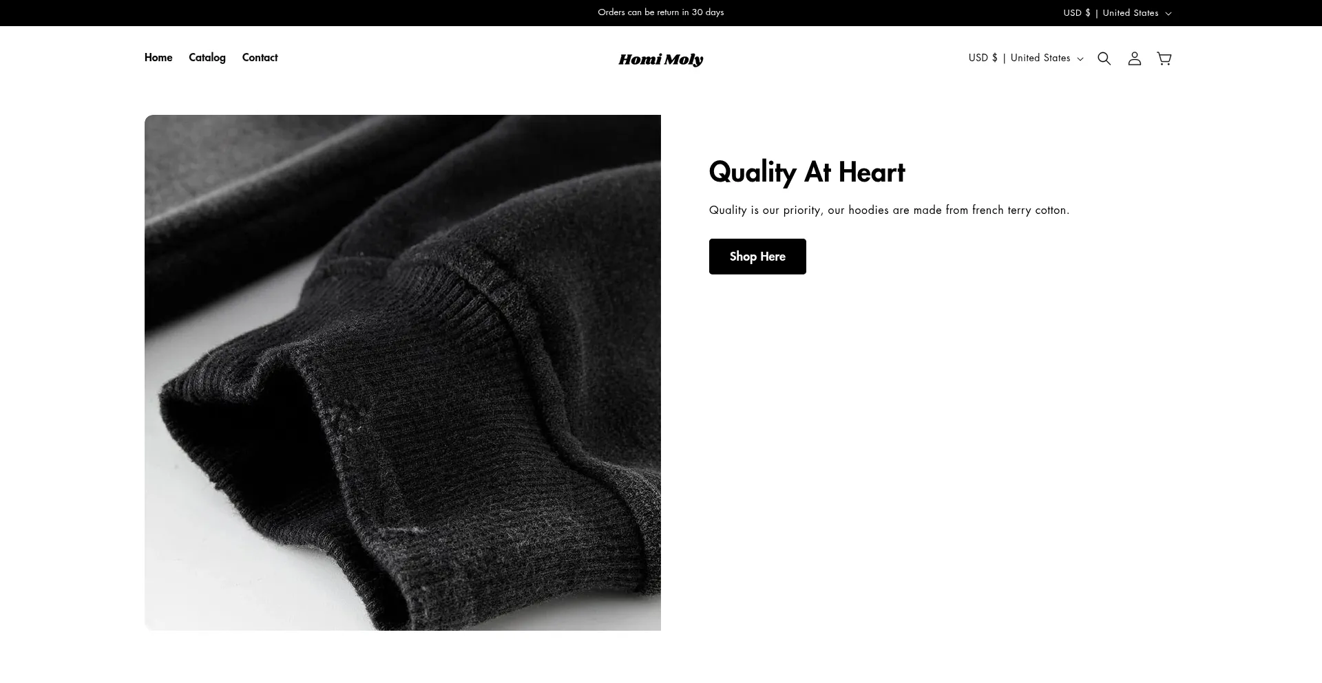 Our analyzer determines that website wearhomimoly.com is using Shopify CMS. Shopify is a popular e-commerce platform, powering around 4.4% of websites globally.