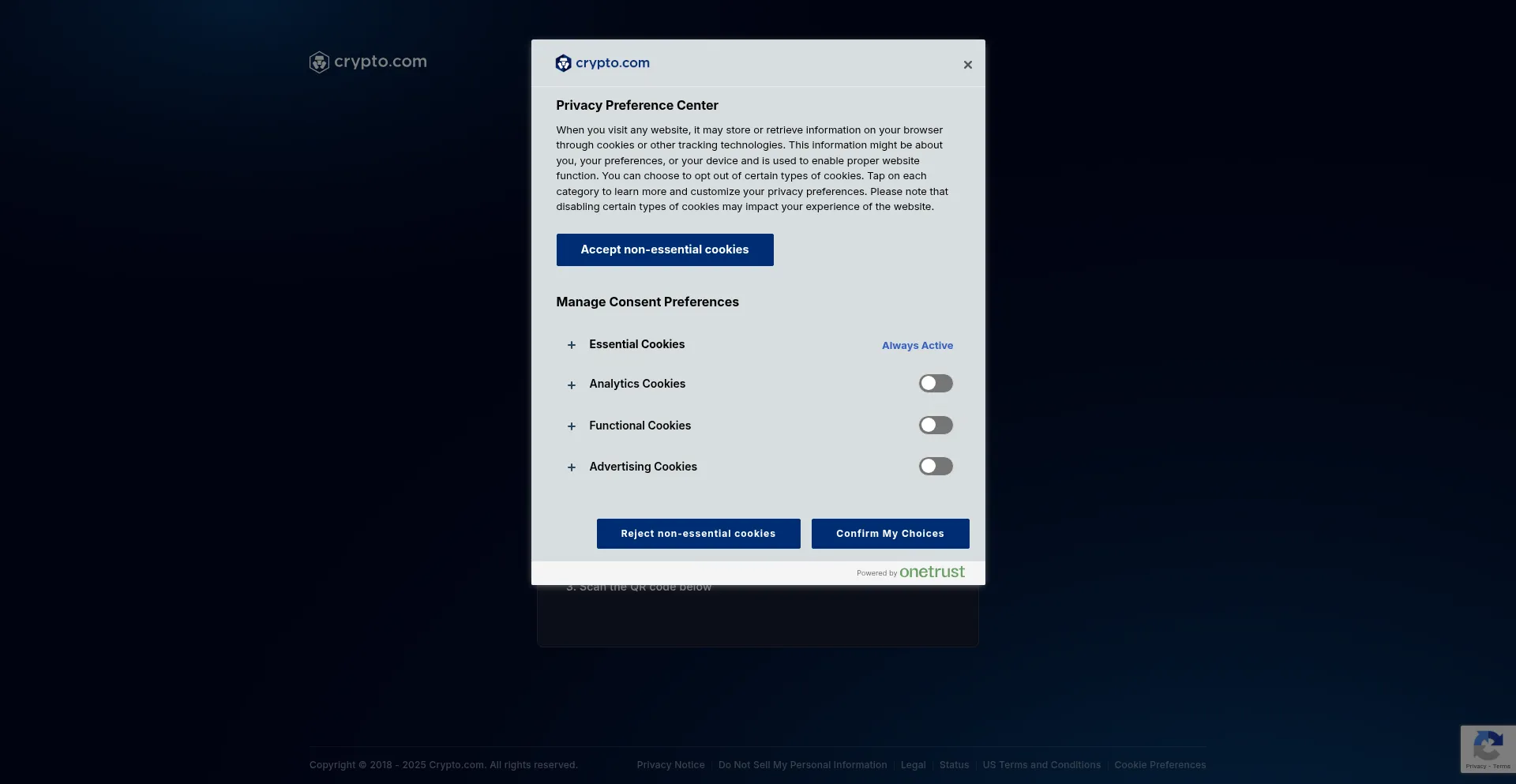 The web.crypto.com website implements data collection forms that may request personal information including names, email addresses, phone numbers, or other sensitive details. Users should verify the legitimacy of it and review privacy policies before submitting personal data.