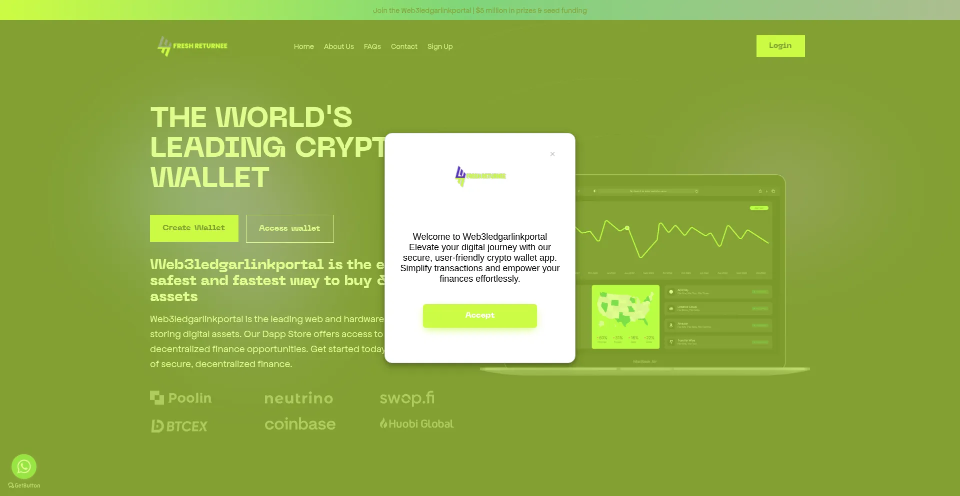 Web3ledgarlinkportal.com operates as a suspicious website with multiple red flags that compromise its trustworthiness and user safety. The platform exhibits concerning characteristics including misleading information, questionable operational practices, or potential malware distribution that poses significant risks to visitors.