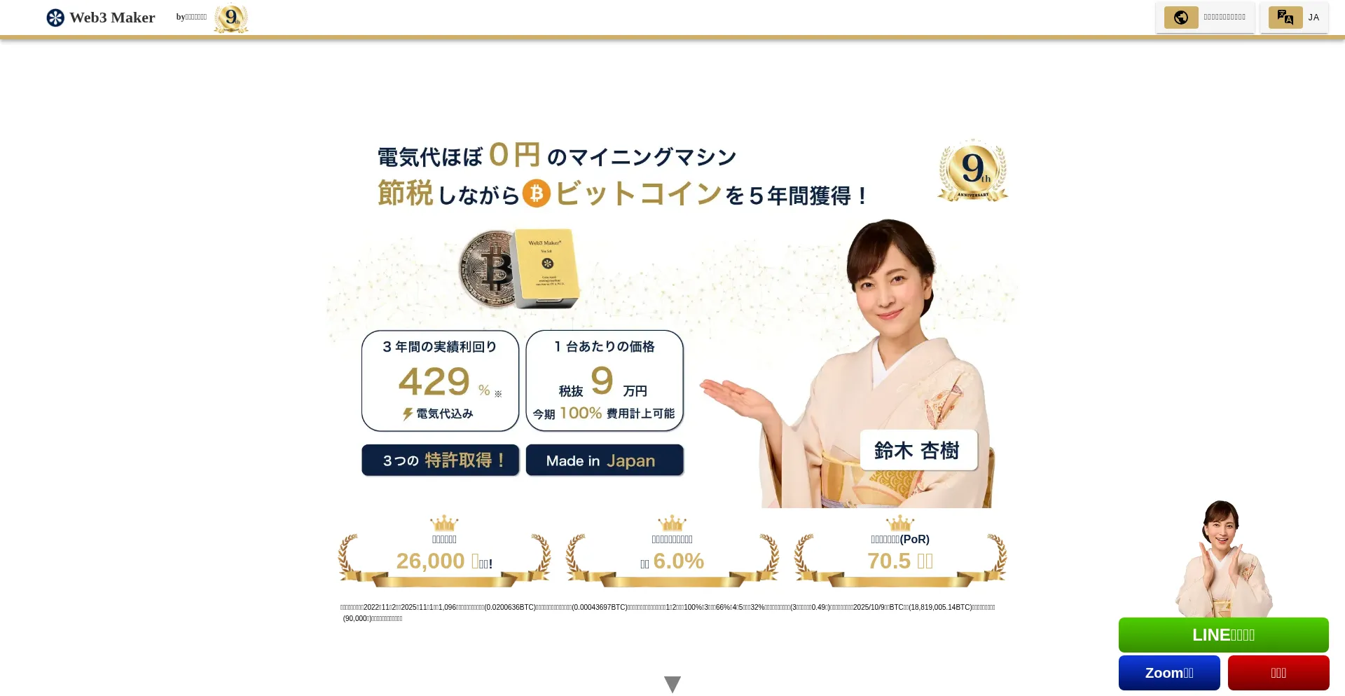 販売数量No1のマイニングマシン「Web3 Maker」は世界最小・最軽量だから電気代ほぼ0円で、3年実績429%のハイパフォーマンス!節税し�...