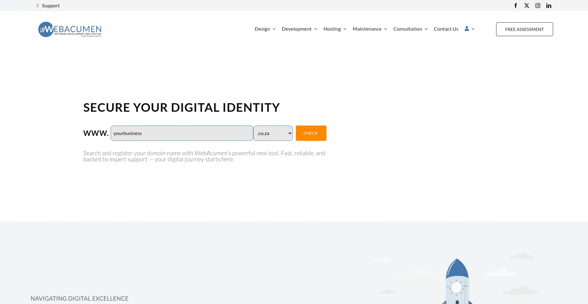 Secure Your Digital Identity Search and register your domain name with WebAcumen’s powerful new tool. Fast, reliable, and backed by expert support — your digital journey sta...