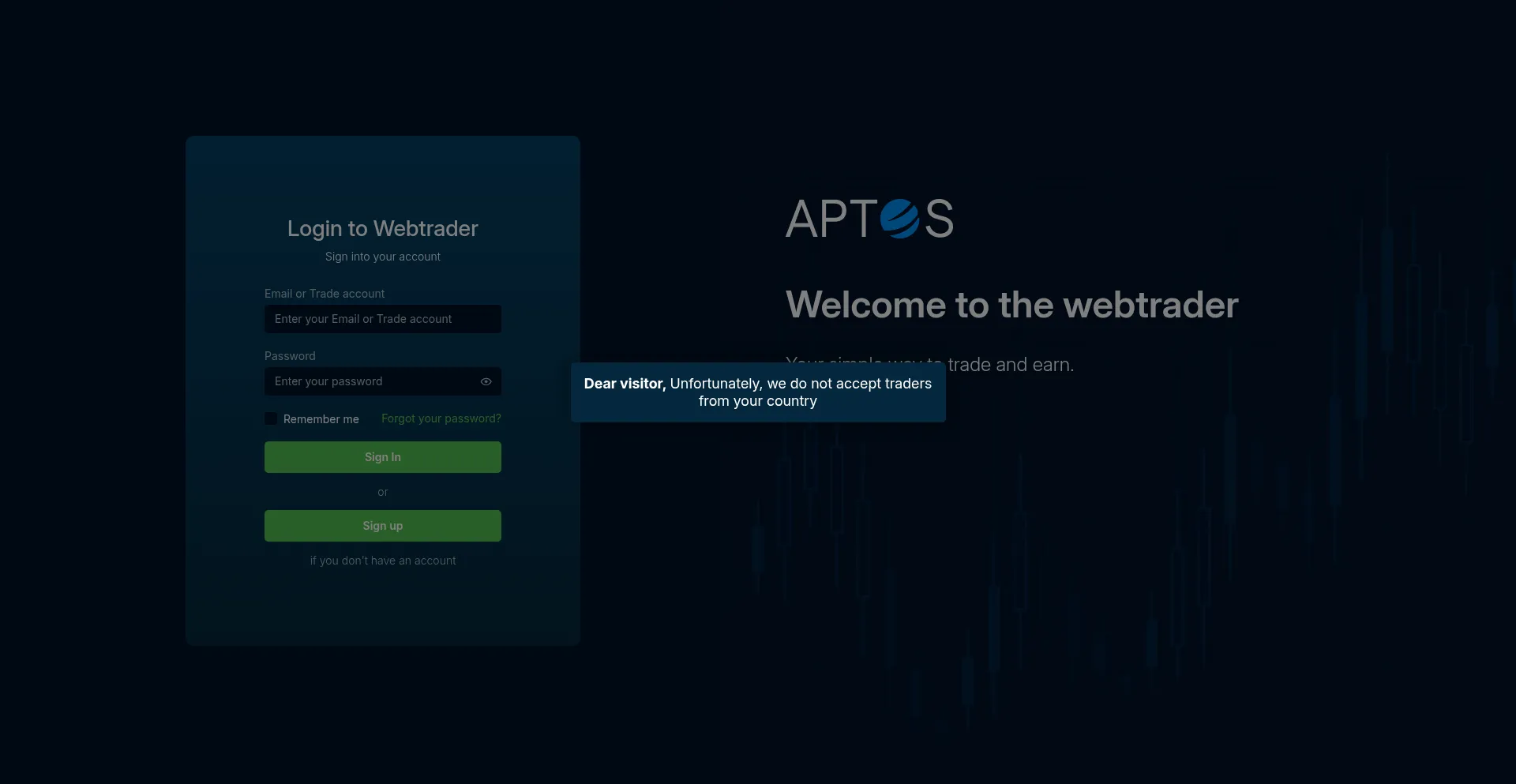Webtrader.aptos-ai.com operates as a suspicious website with multiple red flags that compromise its trustworthiness and user safety. The platform exhibits concerning characteristics including misleading information, questionable operational practices, or potential malware distribution that poses significant risks to visitors.