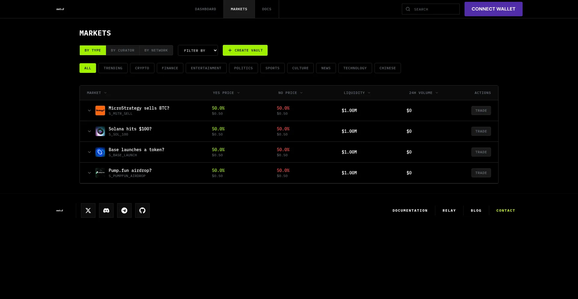 Trade prediction markets and synthetic assets with deep liquidity and real-time pricing on Solana.
