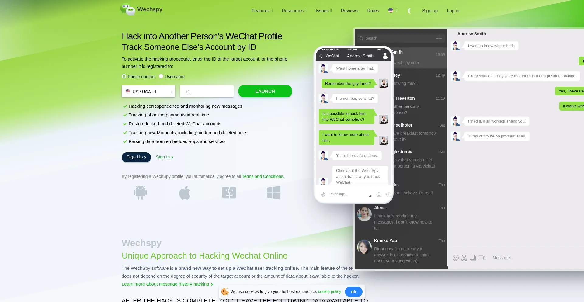 WechSpy has a wide range of functionality to hack login and password authorization on WeChat, determine location, track user activity, find out with whom he communicates and est...