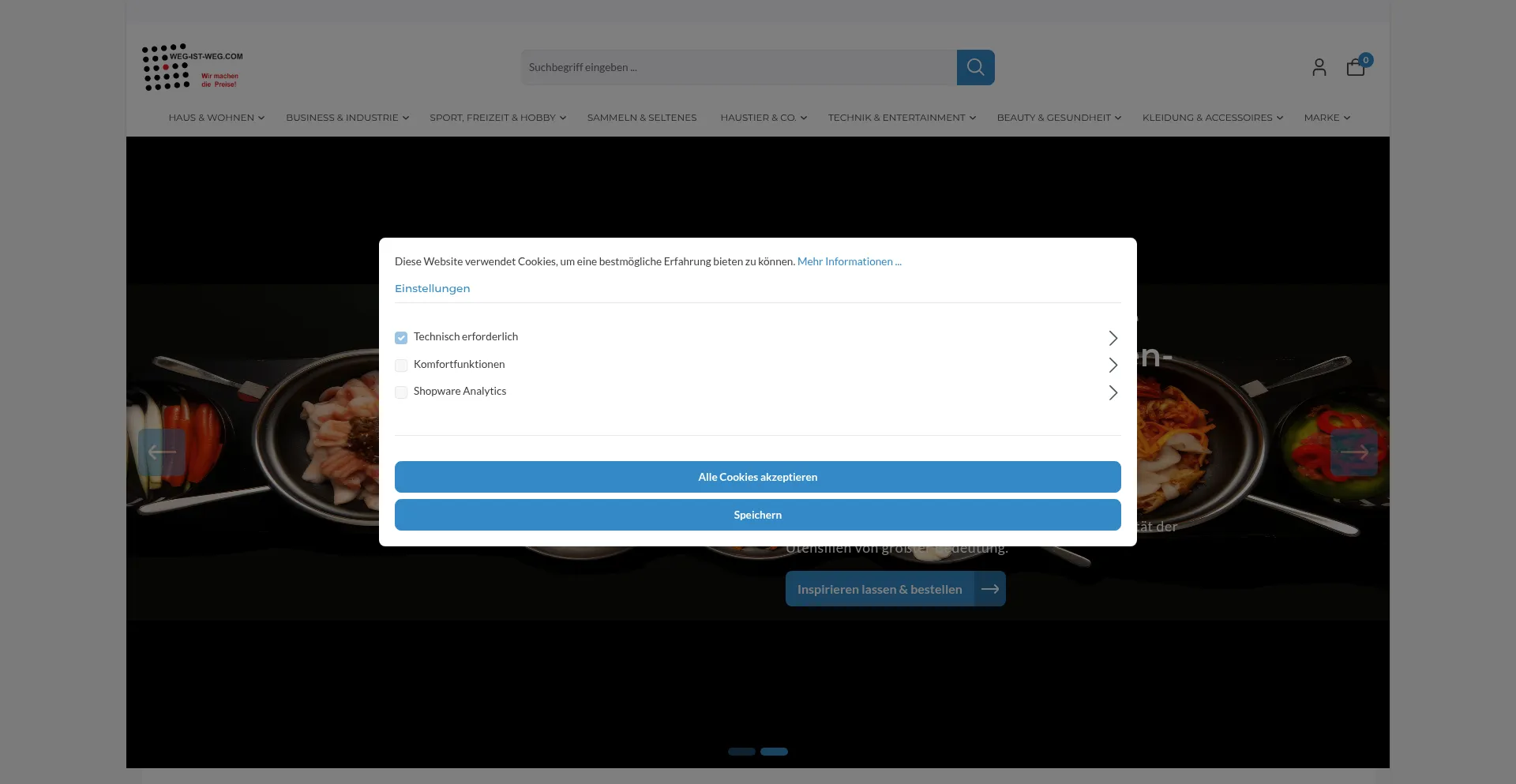 Analysis indicates that weg-ist-weg.com operates as an e-commerce platform facilitating online transactions for goods or services. The website implements shopping cart functionality, payment processing systems, and product catalog features typical of commercial retail operations.
