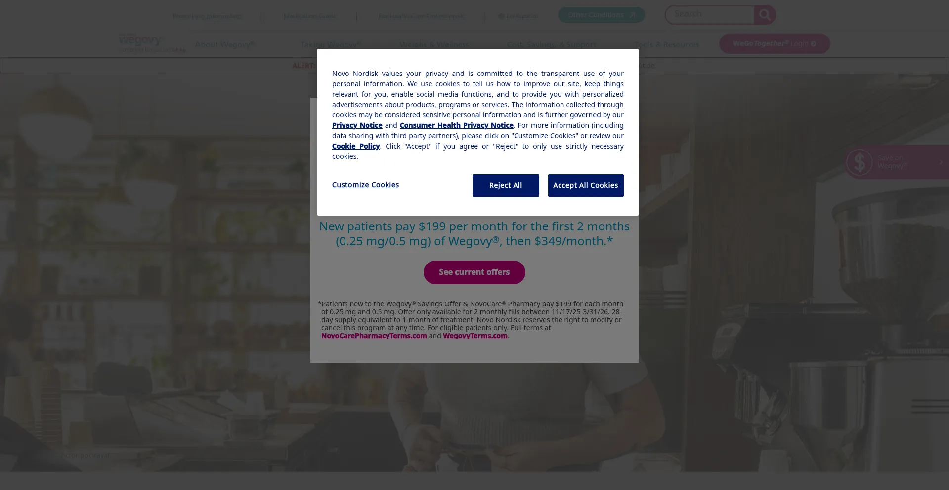 The website implements cookie consent mechanisms in compliance with privacy regulations such as GDPR or CCPA. This demonstrates that wegovy.com adheres to data protection standards and provides users with control over personal data collection practices.
