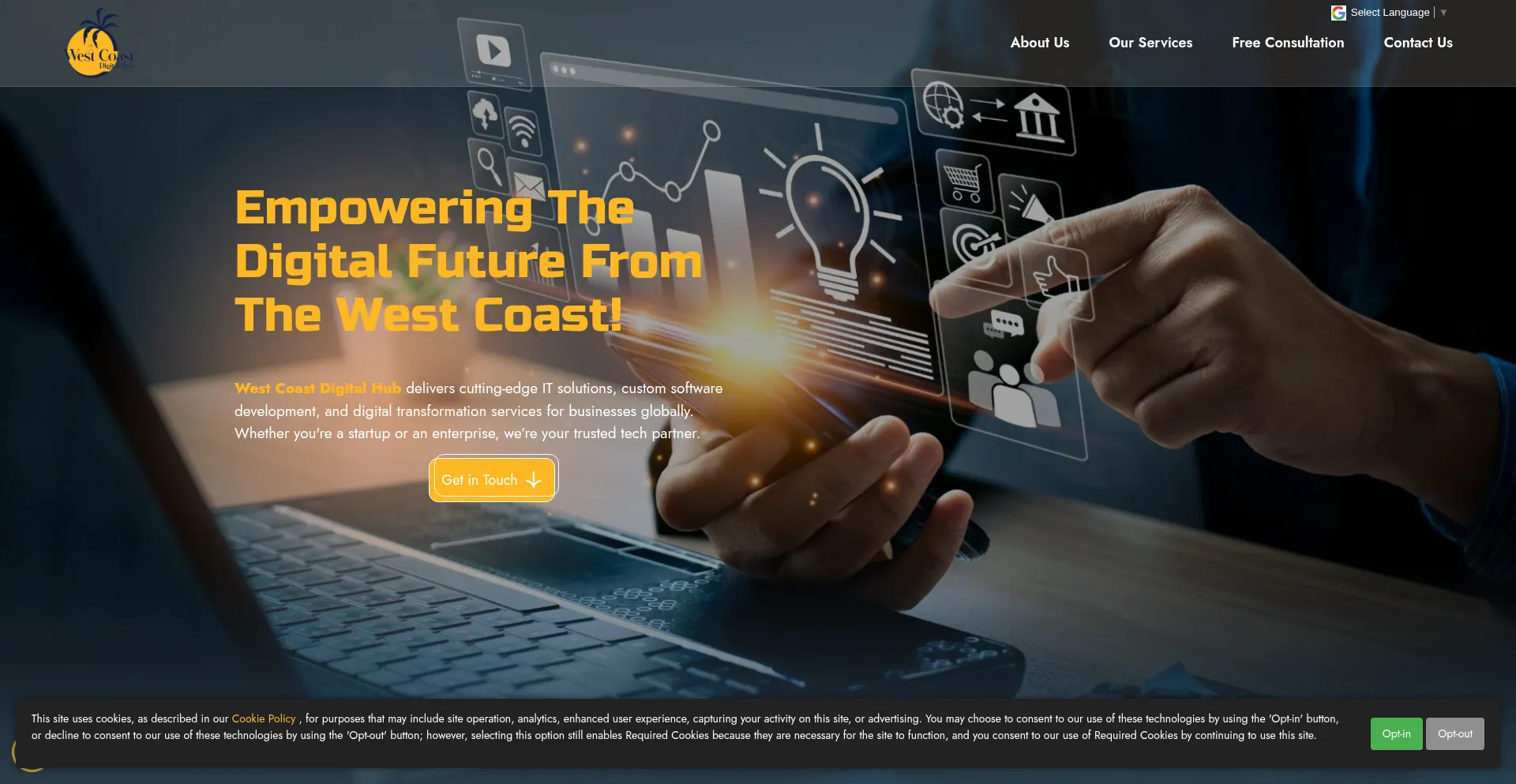 The website implements cookie consent mechanisms in compliance with privacy regulations such as GDPR or CCPA. This demonstrates that westcoastdigitalhub.com adheres to data protection standards and provides users with control over personal data collection practices.
