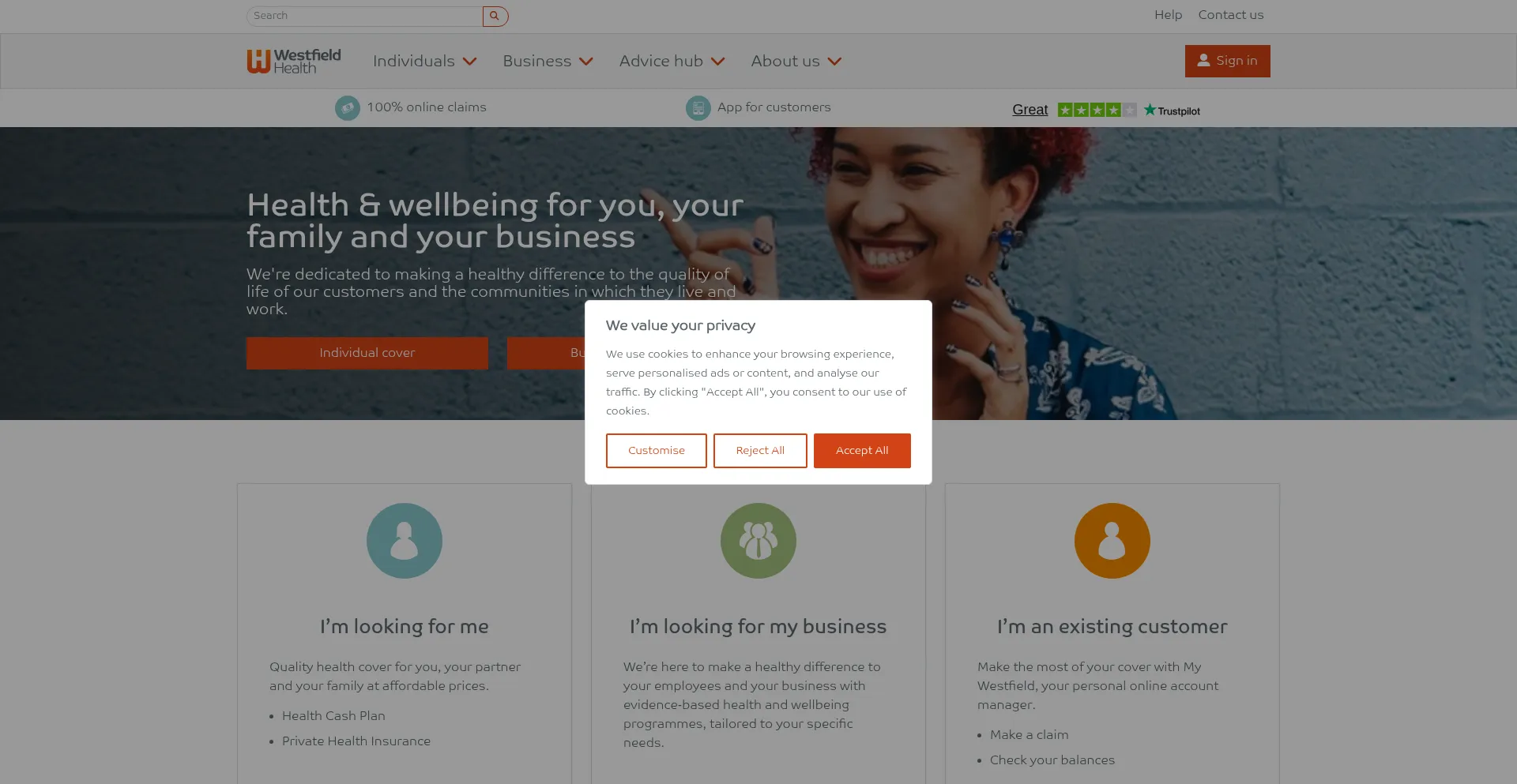 The website implements cookie consent mechanisms in compliance with privacy regulations such as GDPR or CCPA. This demonstrates that westfieldhealth.com adheres to data protection standards and provides users with control over personal data collection practices.