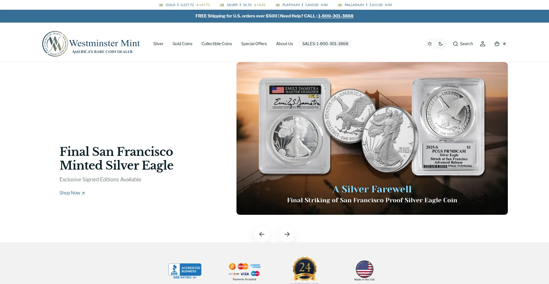 Westminster Mint Numismatics Rarities - Gold, Silver Bullion and coins