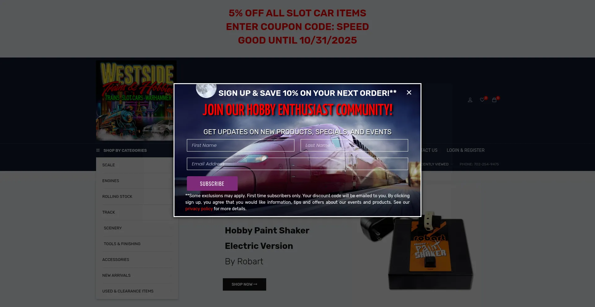 Analysis indicates that westsidetrains.com operates as an e-commerce platform facilitating online transactions for goods or services. The website implements shopping cart functionality, payment processing systems, and product catalog features typical of commercial retail operations.