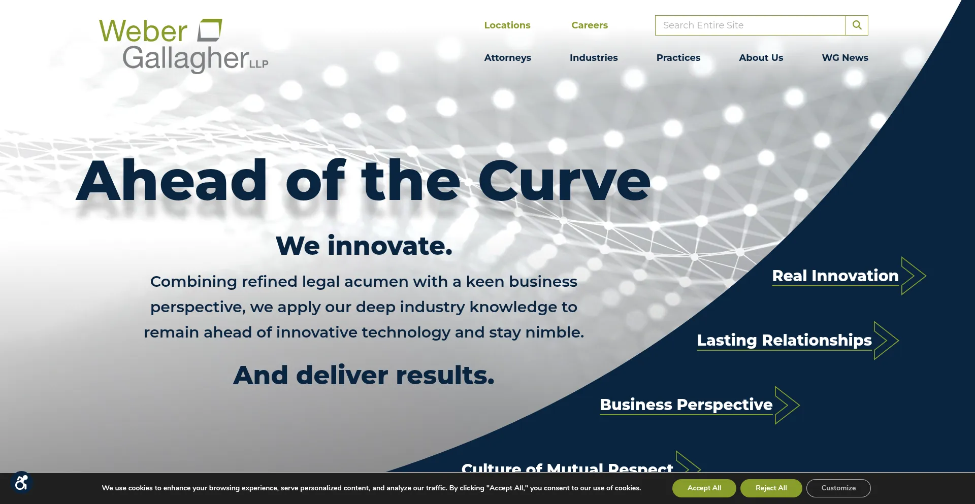 The website implements cookie consent mechanisms in compliance with privacy regulations such as GDPR or CCPA. This demonstrates that wglaw.com adheres to data protection standards and provides users with control over personal data collection practices.