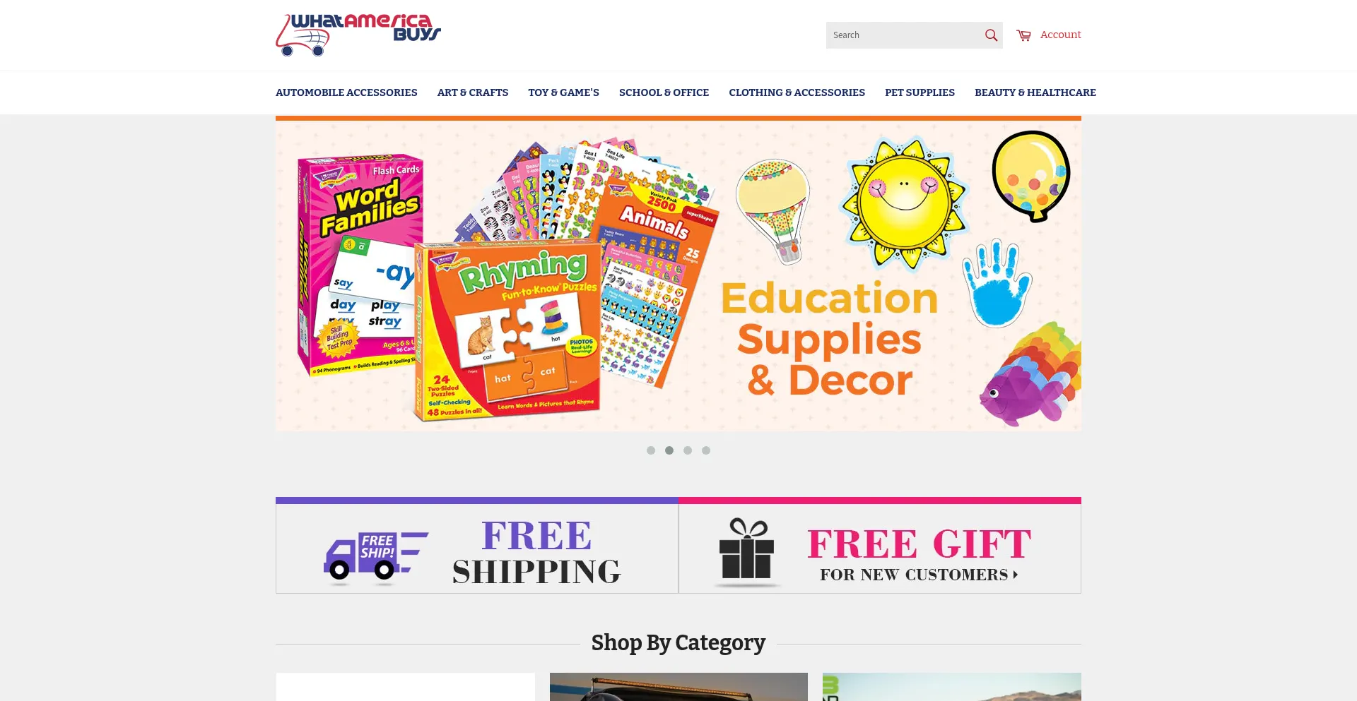 The whatamericabuys.com website utilizes free e-commerce platform solutions, which may indicate cost-conscious operations but could also suggest limitations in security features, customer support, or advanced functionality compared to enterprise-grade solutions.