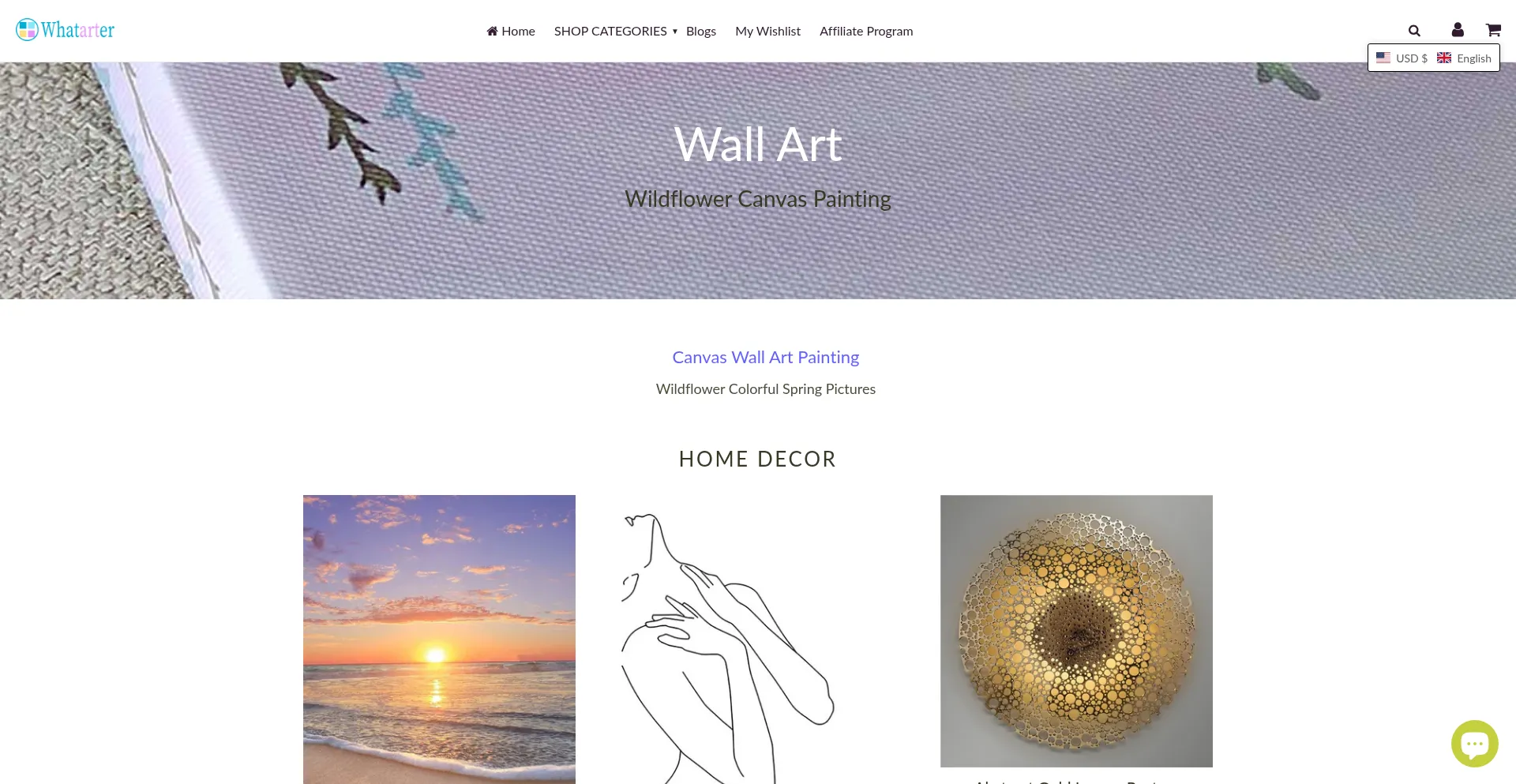 WHATARTER Focus on Home and Office Art, Bath Paintings, Shower Curtains, Living Room Decor, Beautiful Pillow Cases and Wall Artwork Prints Pictures.