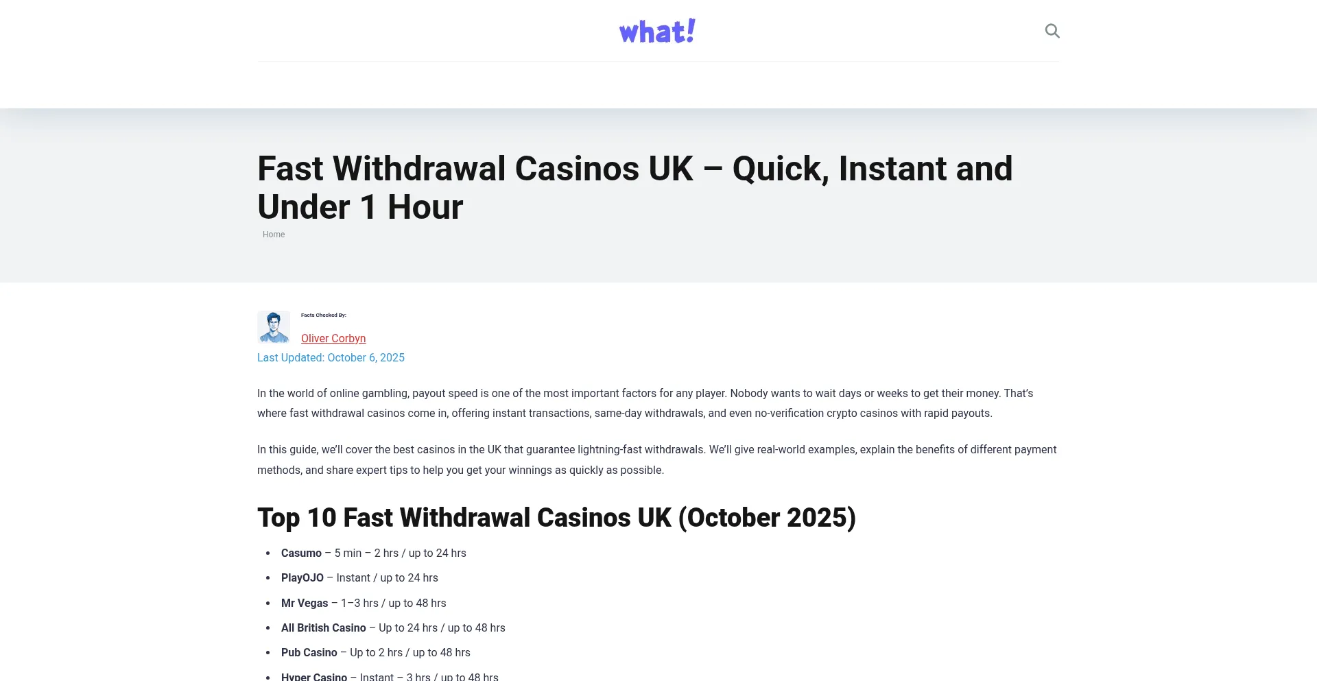 Fast Withdrawal Casinos UK - Quick, Instant and Under 1 Hour