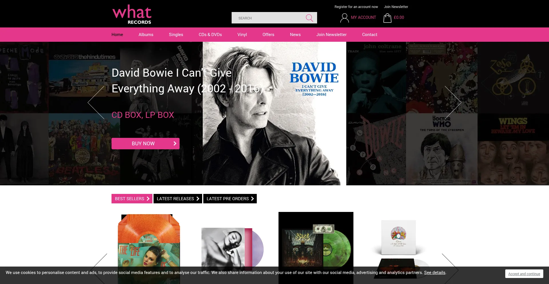 What Records has been a major UK record retailer since 1981. Find the record, CD or DVD you've been looking for at an affordable price in our huge collection.