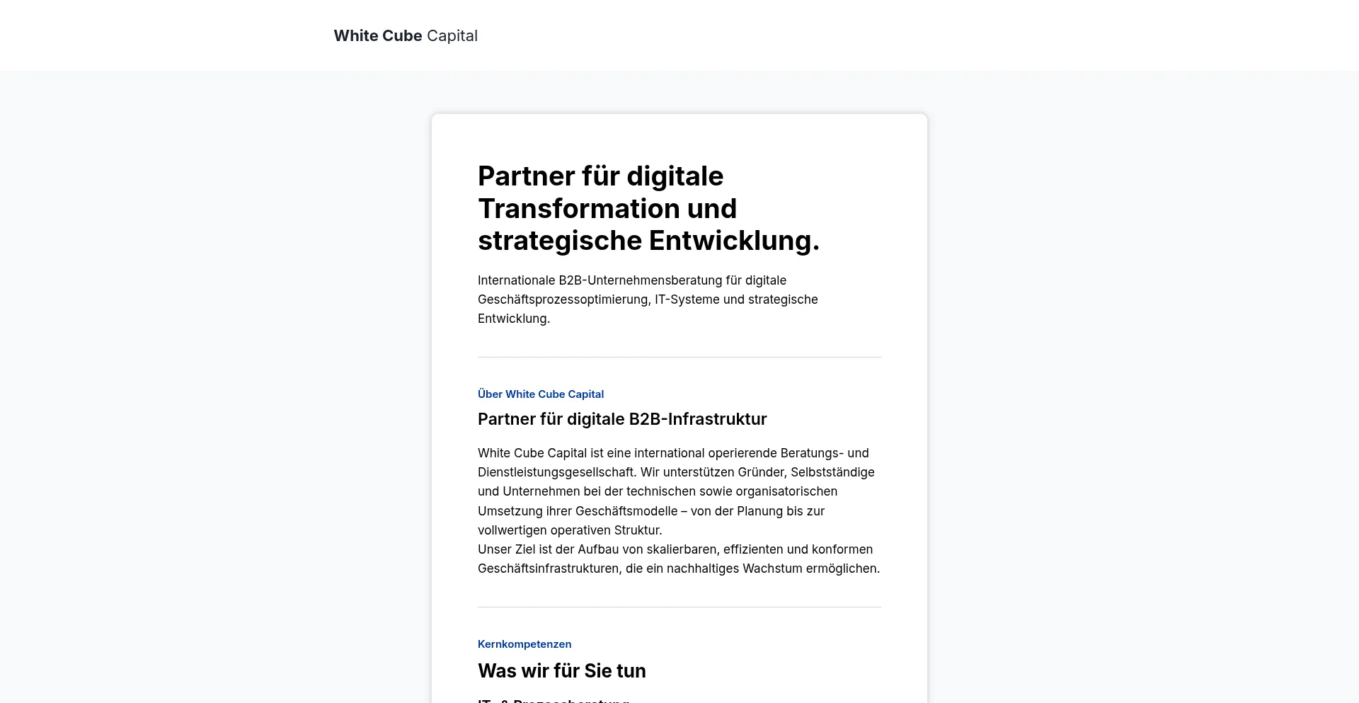 Whitecubecapital.de operates as a suspicious website with multiple red flags that compromise its trustworthiness and user safety. The platform exhibits concerning characteristics including misleading information, questionable operational practices, or potential malware distribution that poses significant risks to visitors.