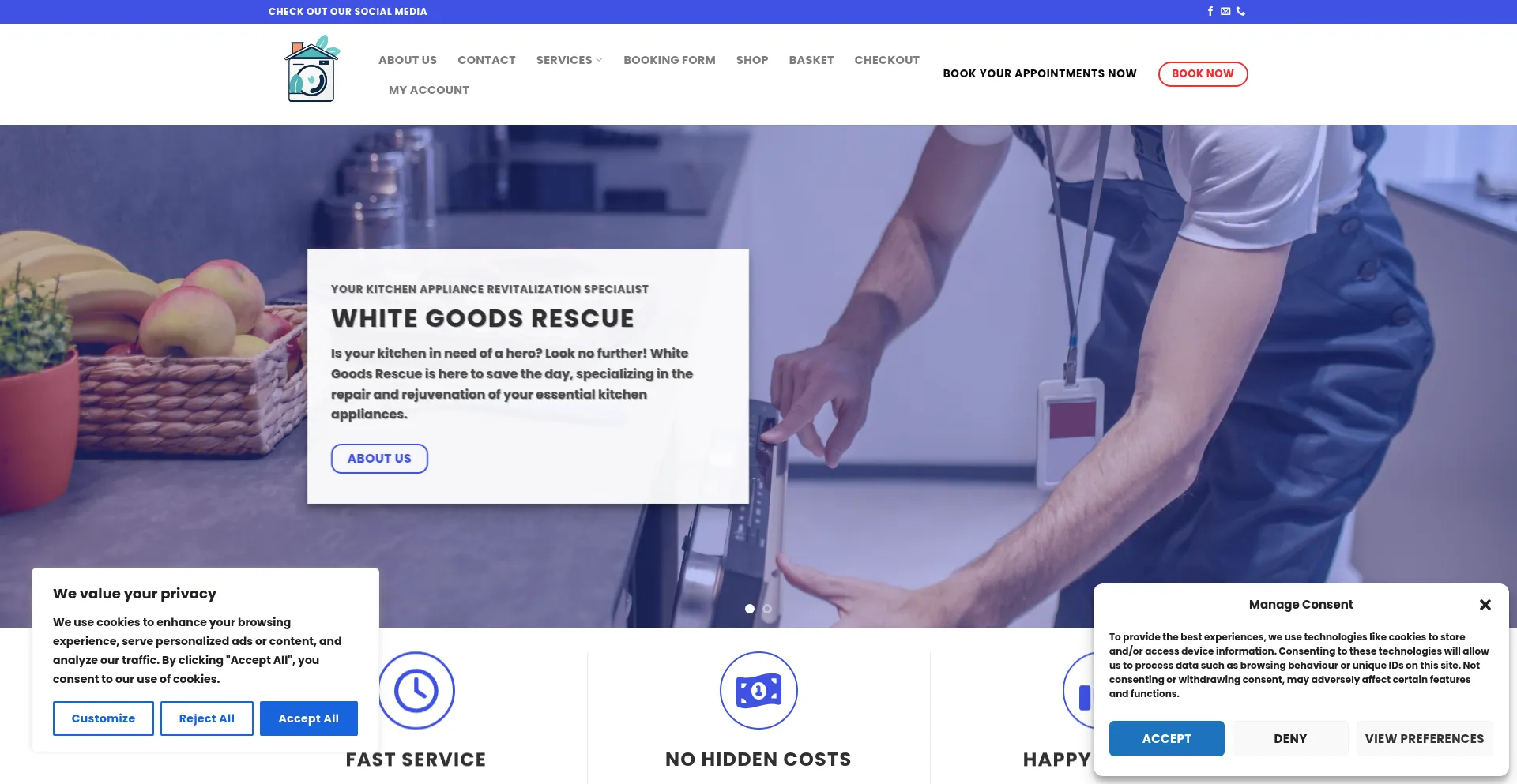 The website implements cookie consent mechanisms in compliance with privacy regulations such as GDPR or CCPA. This demonstrates that whitegoodsrescue.co.uk adheres to data protection standards and provides users with control over personal data collection practices.