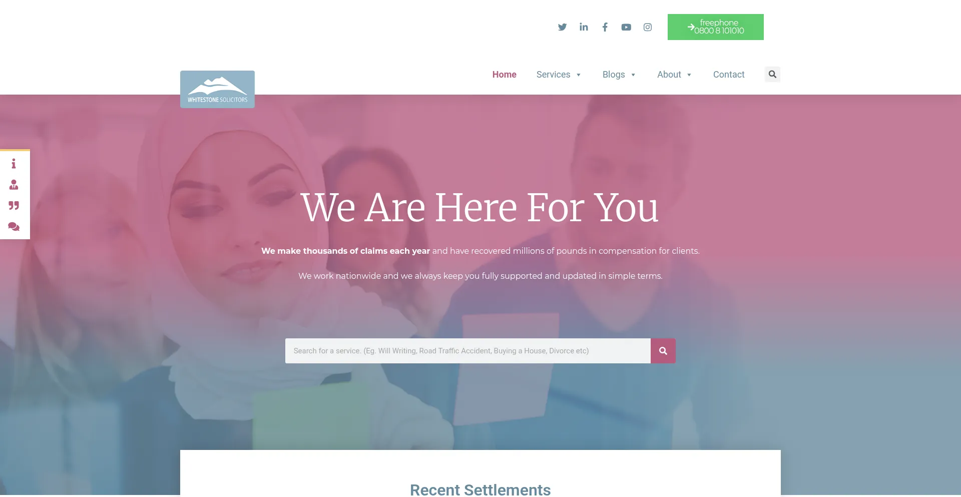 Whitestone Solicitors are a team of expert UK Lawyers and UK Solicitors specialising in Serious Injury Claims and Medical Negligence | Call Free 08008 101010