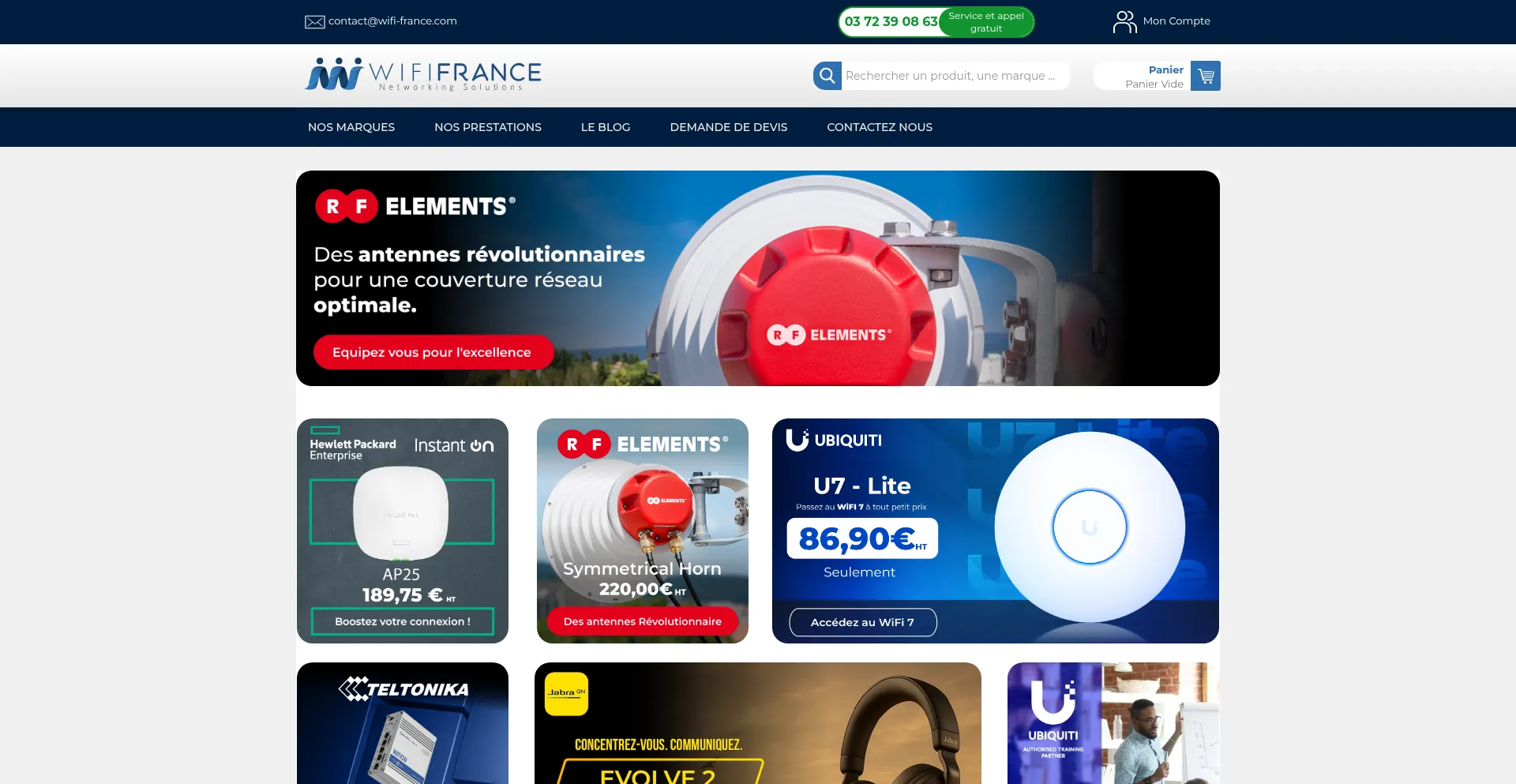 WiFi France | Expert en réseaux sans fil depuis 2014. Distributeur officiel UBIQUITI, MIKROTIK, TP-LINK, CISCO, CISCO MERAKI, YEALINK, GRANDSTREAM, ZYXEL... Points d'accès Wi...