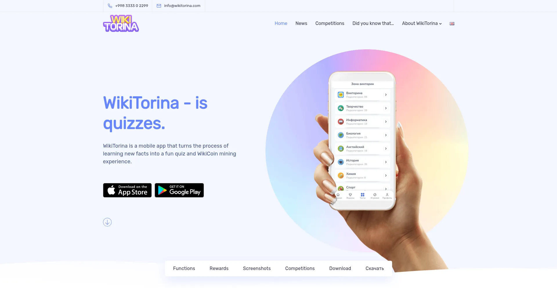 The wikitorina.com website offers a mobile application for Android devices, indicating expanded platform presence beyond web-based services.