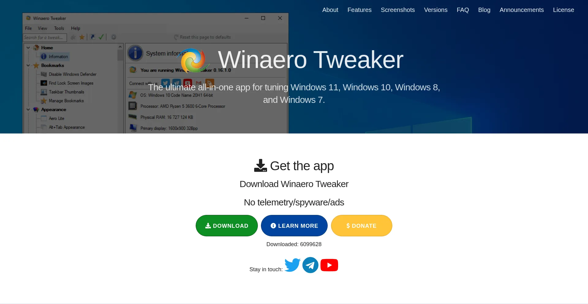 The ultimate all-in-one tweaker for Windows 11, Windows 10, Windows 8, and Windows 7.