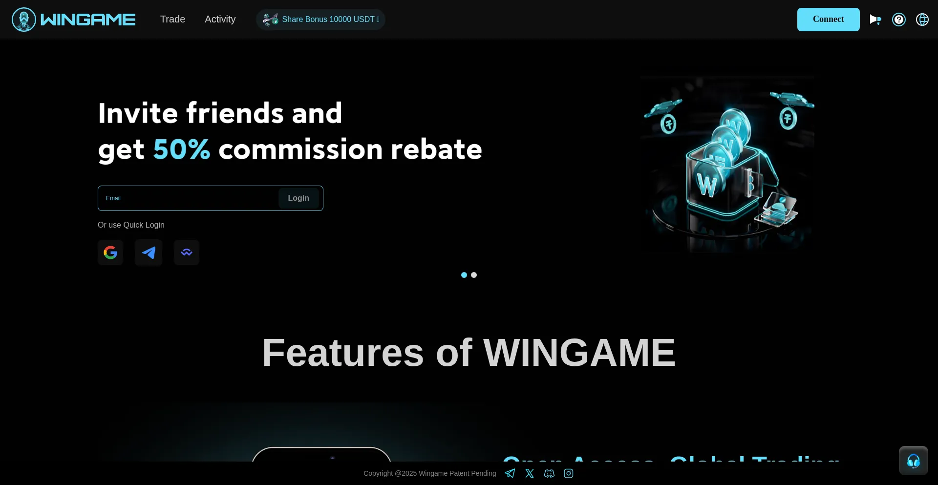 Blockchain-Powered, Ultimate Trading Experience! WINGAME offers low-barrier, ultra-high leverage, and instant settlement crypto contract trading services. Features three-tier re...