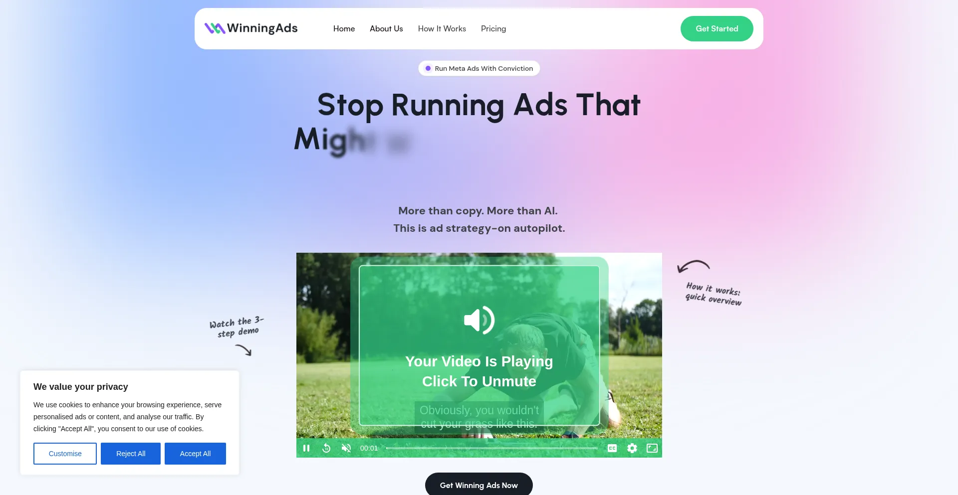 The website implements cookie consent mechanisms in compliance with privacy regulations such as GDPR or CCPA. This demonstrates that winningads.com adheres to data protection standards and provides users with control over personal data collection practices.