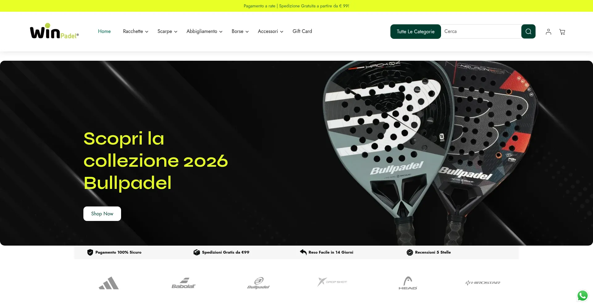 Analysis indicates that winpadelstore.it operates as an e-commerce platform facilitating online transactions for goods or services. The website implements shopping cart functionality, payment processing systems, and product catalog features typical of commercial retail operations.