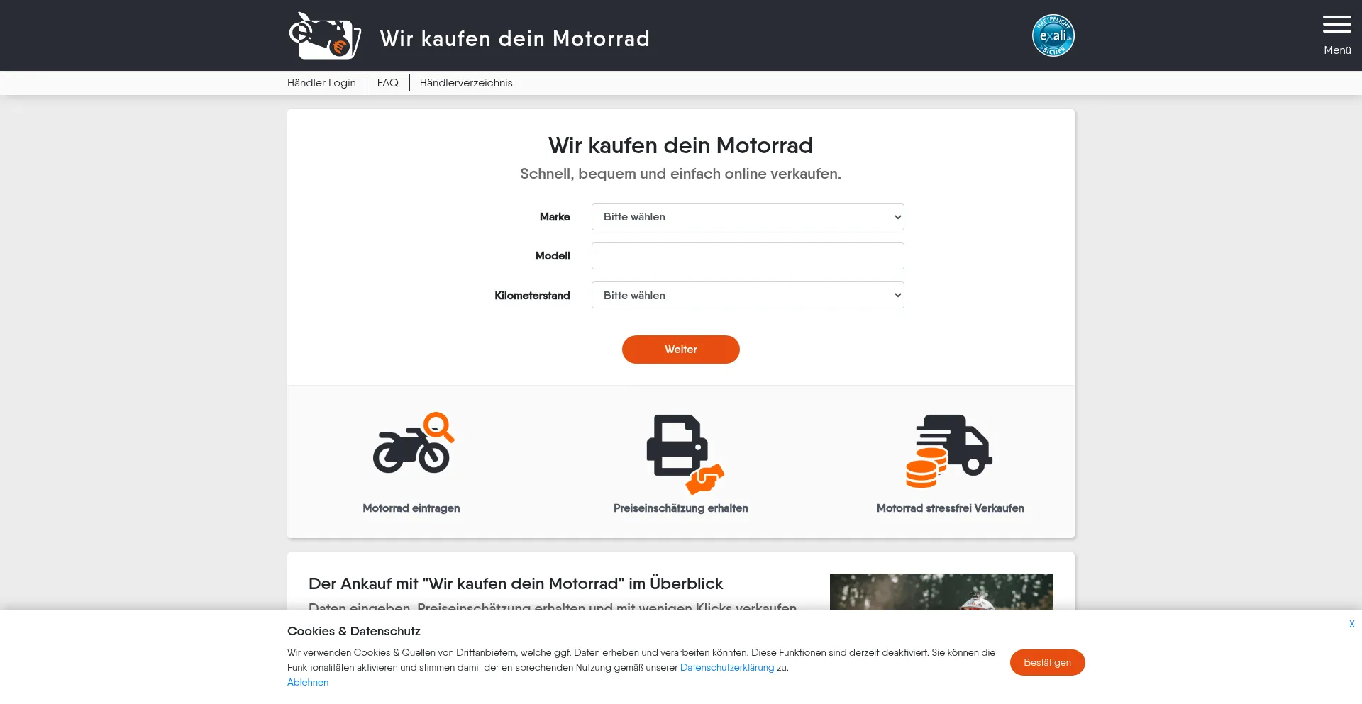 Wir kaufen dein Motorrad - europaweit, schnell, bequem und einfach verkaufen ✓ Motorrad eintragen ✓ Preiseinschätzung erhalten ✓ Abholung vor Ort