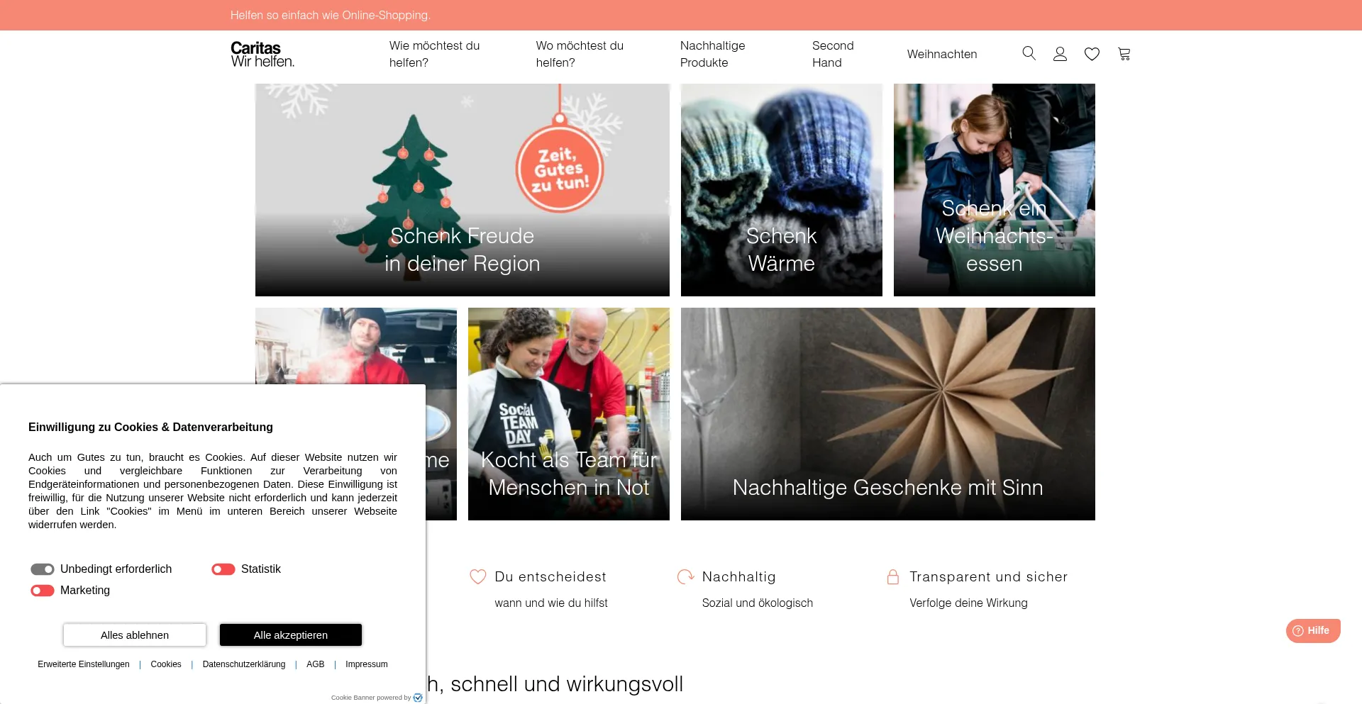 Caritas - Helfen so einfach wie Online-Shopping. Schnell, wirkungsvoll und transparent spenden und nachhaltige Produkte kaufen. Erfahre hier mehr!