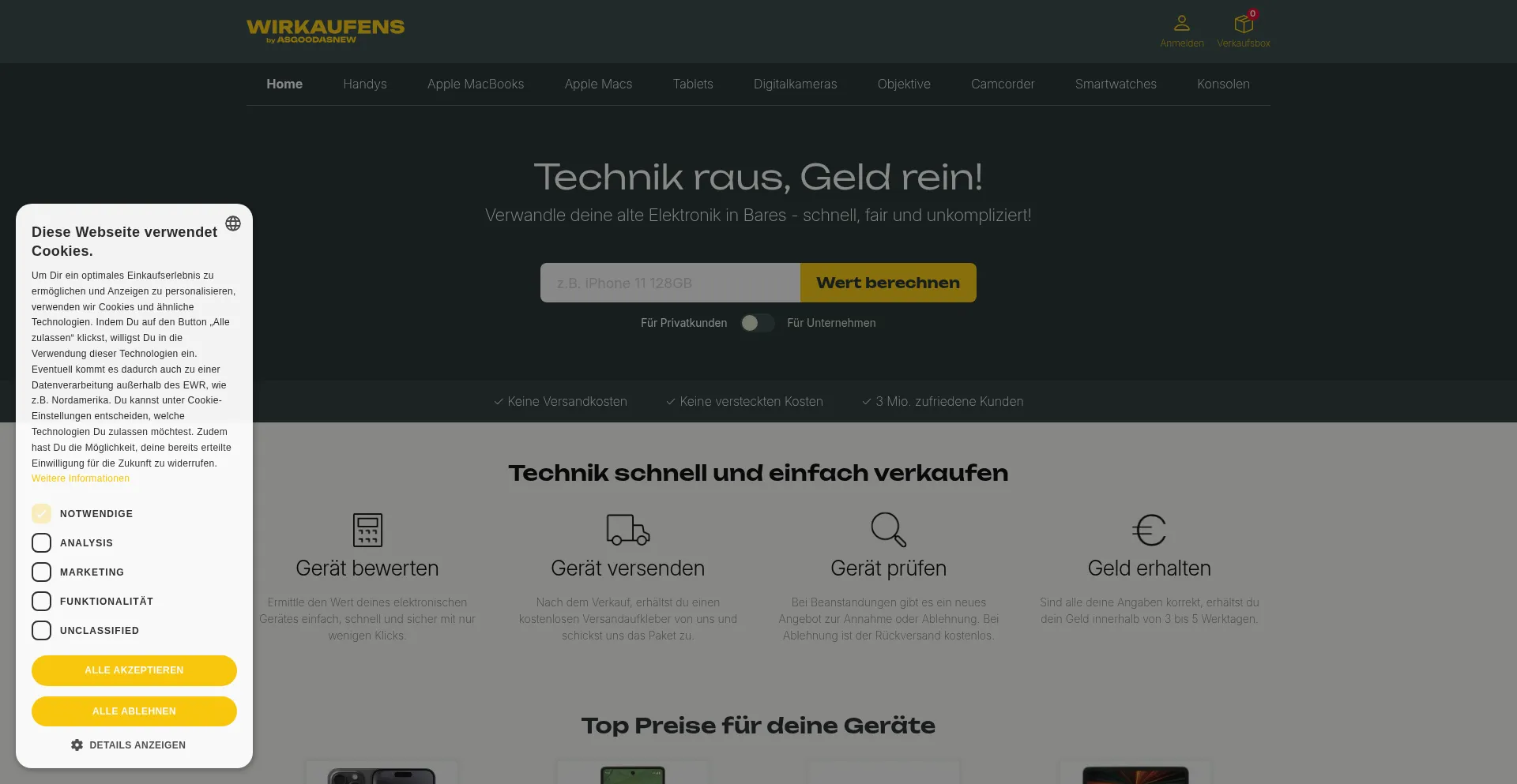 The website implements cookie consent mechanisms in compliance with privacy regulations such as GDPR or CCPA. This demonstrates that wirkaufens.de adheres to data protection standards and provides users with control over personal data collection practices.