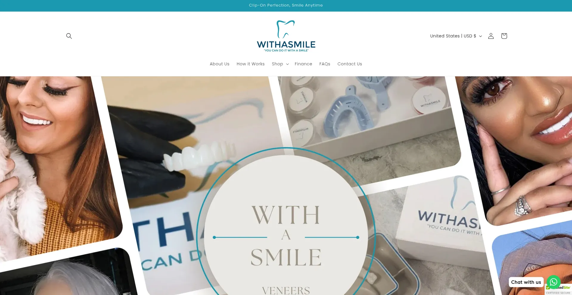 Analysis indicates that withasmileveneers.com operates as an e-commerce platform facilitating online transactions for goods or services. The website implements shopping cart functionality, payment processing systems, and product catalog features typical of commercial retail operations.