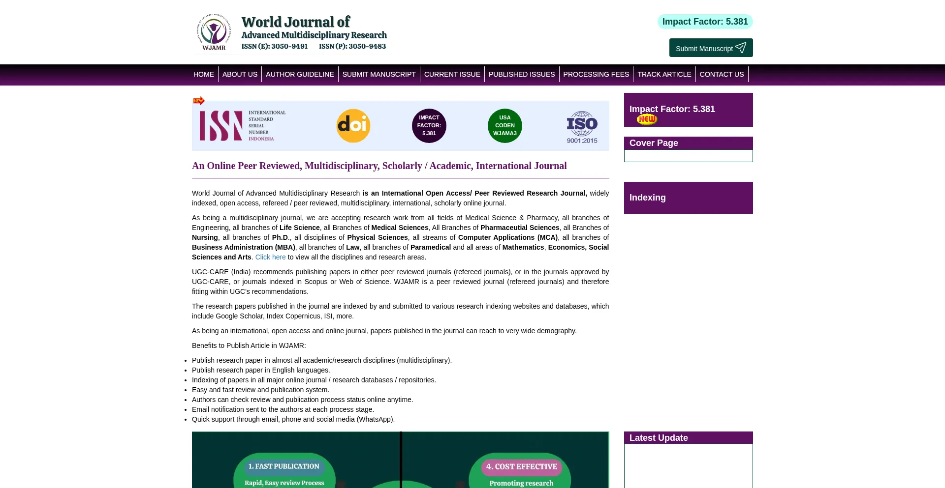 World Journal of Advanced Multidisciplinary Research is an International Open Access/ Peer Reviewed Research Journal, widely indexed, open access, refereed / peer reviewed, mu...