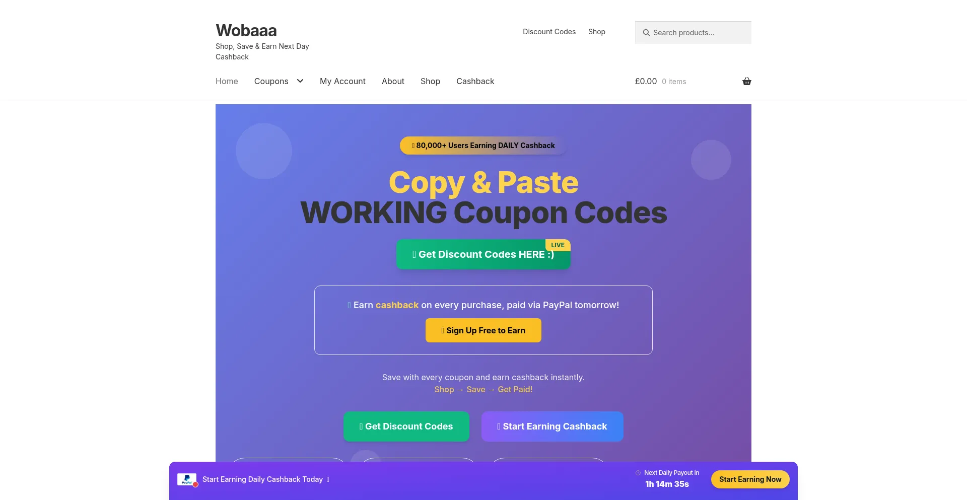Wobaaa: Next-Day Cashback Payments + Working Coupon Codes. Get paid tomorrow for today's purchases. Join free and save at 5,000+ stores like AliExpress & DHGate.